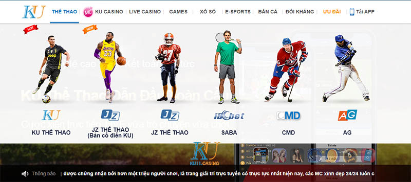 Có đến 6 sảnh cược thể thao cho bạn lựa chọn tại KU11, bao gồm: KU thể thao, JZ thể thao (phiên bản cổ điển KU), JZ thể thao, Saba. CMD và AG.
